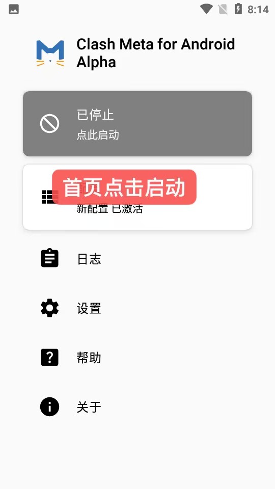 1.打开Clash App 首页,点击启动运行,然后会出现代理选项。