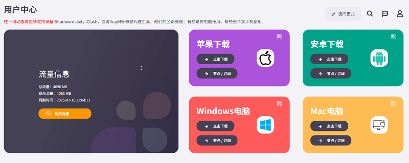 1.安装完成后,在用户中心,点击安卓的【节点/订阅】按钮。