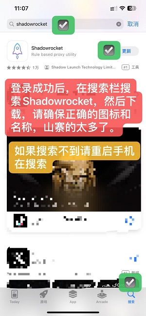 2.登录成功后,搜索不到Shadowrocket的,请重启你的设备(你是手机就重启手机,是iPad就重启iPad)!